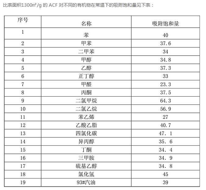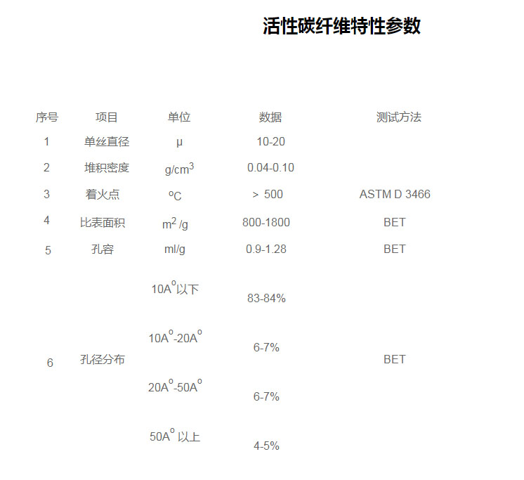 (一)、比表面積大,有效吸附量高。由于同樣重量的纖維的表面積是顆粒的近百倍,所以需要填充的活性碳纖維的重量非常小,然而吸附效率高,而且體積及總重量也都很小。